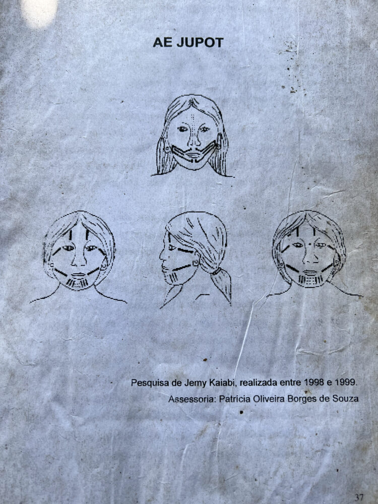 ちなみに古い時代からジェニパポの風習があったことで知られているカデュウェウ族を、こことは別のパンタナルという地域でちょっと訪ねてみたが、彼らのデザインはマヤなどの古代中米との関わりが感じられるデザインで、前述したシェアデザインの系統とはだいぶ違ったものだった。