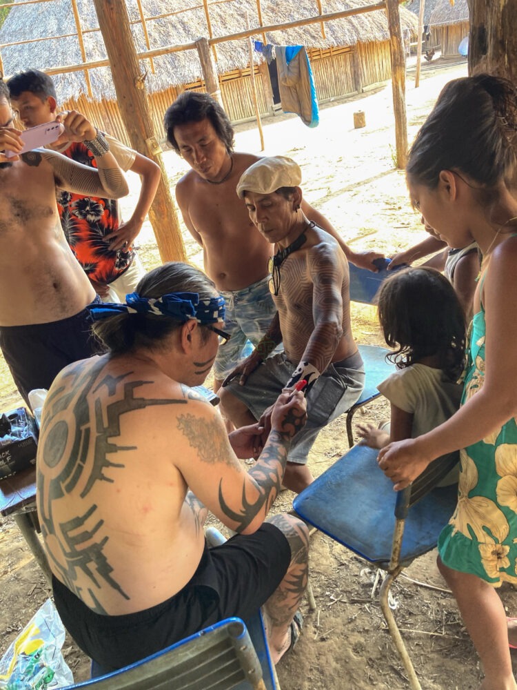シングーという先住民保護地域内に暮らすカヤビという人々がいて、それがかつての部族の風習だったトライバルタトゥーを復興するにあたり、現代の最新のタトゥーマシンを導入することを決め、そのレクチャーを地球の反対側の彫師である僕に頼んでいるのだ。コロナパニックで国境がかなり面倒くさいことになっているご時世にだ。