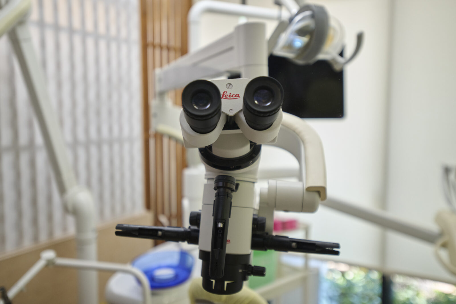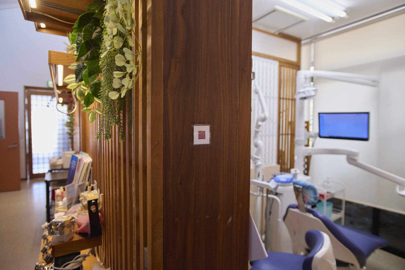 診療台はこんな感じ。院長が持ってきた木のパーテーションも大活躍。落ち着く空間になっています。