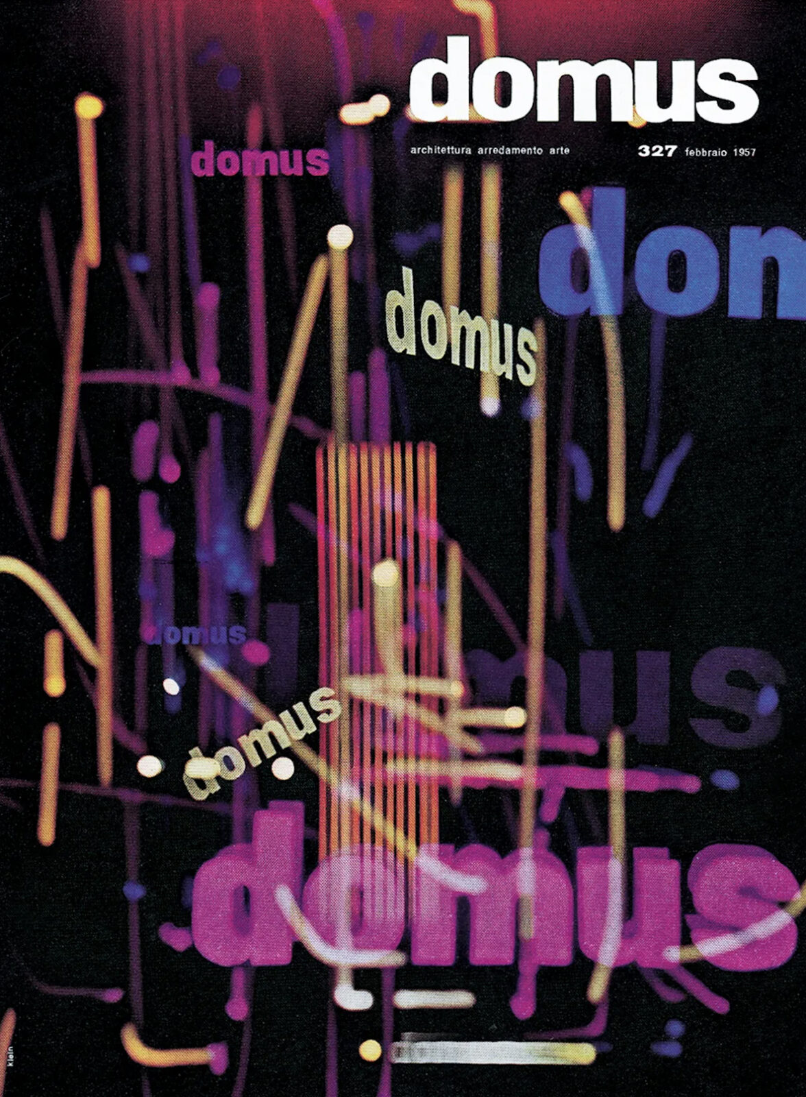 そして、クラインは短期間でその手法を確立し、すぐにイタリアの建築家のジオ・ポンティに注目され、彼が主宰する建築雑誌『ドムス』の表紙を担当するようになる。この抽象的写真表現は、数年後にクラインが出版する最初の写真集にそのままつながっていく(図1)。
